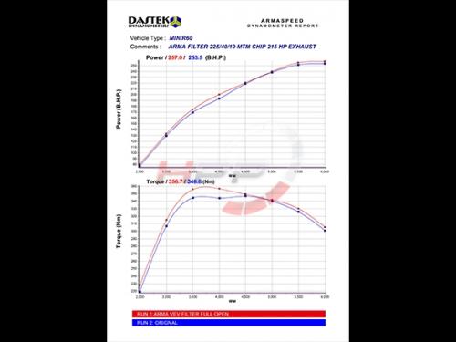 Poznámka: k dispozici je také variabilní typ sání za příplatek, který je viditelný na fotkách. Ten obsahuje vzduchový filtr s nerezovou konstrukcí a vestavěnou klapkou, která je ovládána elektronicky pomocí dálkového ovladače a řídící jednotky napojenou do OBDII konektoru. Hlavním cílem je obnova ztráty kroutícího momentu hlavně v nízkých otáčkách, což je častý jev u sportovních filtrů. Klapka umožňuje individuálně nastavit proudění vzduchu pomocí dálky nebo Wi-Fi aplikace v chytrém telefonu (Apple, Google). Tento systém je patentován v Německu firmou Arma.