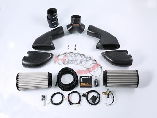 Poznámka: k dispozici je také variabilní typ sání za příplatek, který je viditelný na fotkách. Ten obsahuje vzduchový filtr s nerezovou konstrukcí a vestavěnou klapkou, která je ovládána elektronicky pomocí dálkového ovladače a řídící jednotky napojenou do OBDII konektoru. Hlavním cílem je obnova ztráty kroutícího momentu hlavně v nízkých otáčkách, což je častý jev u sportovních filtrů. Klapka umožňuje individuálně nastavit proudění vzduchu pomocí dálky nebo Wi-Fi aplikace v chytrém telefonu (Apple, Google). Tento systém je patentován v Německu firmou Arma.