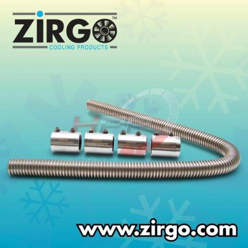 Kit na vedení vody k vodnímu chladiči Zirgo je ideální jako náhrada za sériové gumové těsnění. Nabízí mnohem silnější podporu než klasické vedení. Nehrozí protržení, prasknutí nebo prosakování hadic. Ideální v kombinaci se závodním chladičem. Flexibilní hadice lze snadno tvarovat. Díky gumovým vložkám dvou průměrů vně koncovek lze použít jako náhrada za většinu sériových hadic k chladicí.