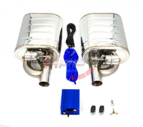 Sada univerzálních koncových tlumičů výfuku vyrobených kompletně z nerezové oceli T304 s integrovanou výfukovou klapkou. Klapky jsou ovládány elektronicky pomocí dálkového ovládání nebo pomocí aplikace přes zásuvku OBD pomocí modulu. Napájení je řešeno na 12V přes cigaretový zapalovač nebo zapojením přes spínací skříňku. Výfuk je určený pro jízdu s otevřenou klapkou, při zavření dochází k nárůstu protitlaku, musí být tedy brán zřetel na dávkování výkonu, což platí zejména u turbo motorů.