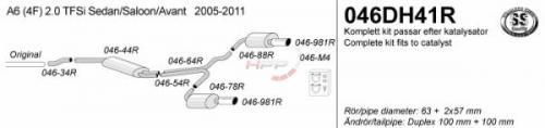 Koncové tlumiče výfuku Simons Audi A6 4F 2WD 2.0TFSI (05-11). Kompletní výfukový systém od katalyzátoru.