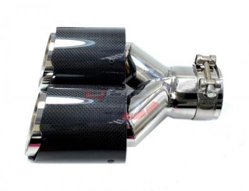 Koncovka výfuku Jap Parts karbonová - kulatá zkosená duální průměr 2x 102mm - montážní průměr 63,5mm.