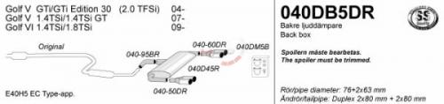 Koncový tlumič výfuku Simons VW Golf 6 1.4TSi/1.8TSi (08-13). Kompletní výfukový systém od středového tlumiče.