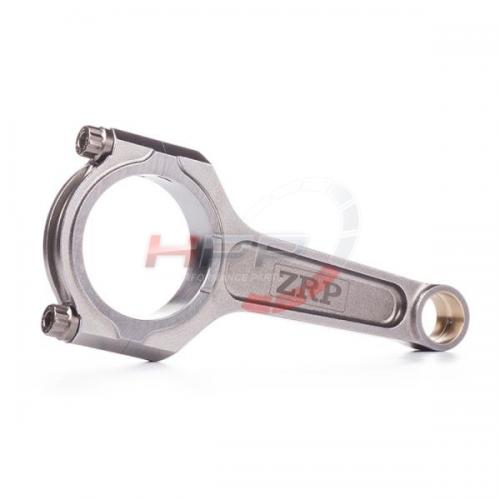Kované ojnice od firmy ZRP se vyznačují perfektní kvalitou a přesností. Ojnice procházejí dodatečnými obráběcími procesy. Postranní žebrování minimalizuje kroucení ojnice a také redukuje její váhu. Pouzdra disponují radiální drážkou a jsou vyrobena ze slitin hliníku, bronzu a silikonu. Spojovací rukávy zaručují perfektní přesnost při montáži a opětovné použití. Drážkování v opěrných bodech poskytuje redukci váhy. Ojnice procházejí několika technickými kroky. Brokování zaručuje delší životnost. Magnaflux zaručuje kontrolu konzistence kovaného materiálu, který musí splňovat vysoký standard. Několika stupňový žárovací proces zaručuje vysokou pevnost, rozměrovou stálost a eliminuje únavu materiálu. Obrábění na CNC strojích zaručuje vynikající toleranci a přesnost 0.0003". Optimální vyvážení celé sady (+/- 1g). Přesnost osové vzdálenosti s tolerancí 001". Počítačová analýza Finite Element Analysis (FEA) odhaluje možné napětí. Šrouby ARP 2000 jsou rezistentní do upínací síly až 220.000psi, ARP L-19 pak až do síly 260.000/270.000psi. Kombinované testy prokázaly výdrž ojnic přes 700PS+ s použitím šroubů ARP 2000, se šrouby L-19 přes 800PS+ u 4-válcového motoru a 1000PS+ u 6-válcového motoru. Ojnice jsou dodávány s lubrikantem ARP moly a montážními instrukcemi.