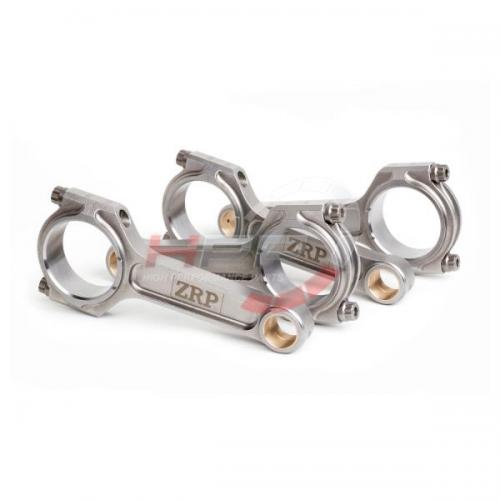 Kované ojnice od firmy ZRP se vyznačují perfektní kvalitou a přesností. Ojnice procházejí dodatečnými obráběcími procesy. Postranní žebrování minimalizuje kroucení ojnice a také redukuje její váhu. Pouzdra disponují radiální drážkou a jsou vyrobena ze slitin hliníku, bronzu a silikonu. Spojovací rukávy zaručují perfektní přesnost při montáži a opětovné použití. Drážkování v opěrných bodech poskytuje redukci váhy. Ojnice procházejí několika technickými kroky. Brokování zaručuje delší životnost. Magnaflux zaručuje kontrolu konzistence kovaného materiálu, který musí splňovat vysoký standard. Několika stupňový žárovací proces zaručuje vysokou pevnost, rozměrovou stálost a eliminuje únavu materiálu. Obrábění na CNC strojích zaručuje vynikající toleranci a přesnost 0.0003". Optimální vyvážení celé sady (+/- 1g). Přesnost osové vzdálenosti s tolerancí 001". Počítačová analýza Finite Element Analysis (FEA) odhaluje možné napětí. Šrouby ARP 2000 jsou rezistentní do upínací síly až 220.000psi, ARP L-19 pak až do síly 260.000/270.000psi. Kombinované testy prokázaly výdrž ojnic přes 700PS+ s použitím šroubů ARP 2000, se šrouby L-19 přes 800PS+ u 4-válcového motoru a 1000PS+ u 6-válcového motoru. Ojnice jsou dodávány s lubrikantem ARP moly a montážními instrukcemi.