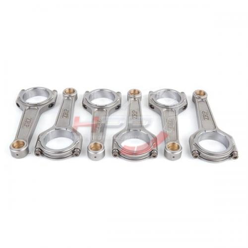 Kované ojnice od firmy ZRP se vyznačují perfektní kvalitou a přesností. Ojnice procházejí dodatečnými obráběcími procesy. Postranní žebrování minimalizuje kroucení ojnice a také redukuje její váhu. Pouzdra disponují radiální drážkou a jsou vyrobena ze slitin hliníku, bronzu a silikonu. Spojovací rukávy zaručují perfektní přesnost při montáži a opětovné použití. Drážkování v opěrných bodech poskytuje redukci váhy. Ojnice procházejí několika technickými kroky. Brokování zaručuje delší životnost. Magnaflux zaručuje kontrolu konzistence kovaného materiálu, který musí splňovat vysoký standard. Několika stupňový žárovací proces zaručuje vysokou pevnost, rozměrovou stálost a eliminuje únavu materiálu. Obrábění na CNC strojích zaručuje vynikající toleranci a přesnost 0.0003". Optimální vyvážení celé sady (+/- 1g). Přesnost osové vzdálenosti s tolerancí 001". Počítačová analýza Finite Element Analysis (FEA) odhaluje možné napětí. Šrouby ARP 2000 jsou rezistentní do upínací síly až 220.000psi, ARP L-19 pak až do síly 260.000/270.000psi. Kombinované testy prokázaly výdrž ojnic přes 700PS+ s použitím šroubů ARP 2000, se šrouby L-19 přes 800PS+ u 4-válcového motoru a 1000PS+ u 6-válcového motoru. Ojnice jsou dodávány s lubrikantem ARP moly a montážními instrukcemi.