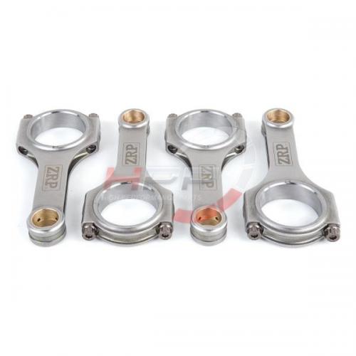 Kované ojnice od firmy ZRP se vyznačují perfektní kvalitou a přesností. Ojnice procházejí dodatečnými obráběcími procesy. Postranní žebrování minimalizuje kroucení ojnice a také redukuje její váhu. Pouzdra disponují radiální drážkou a jsou vyrobena ze slitin hliníku, bronzu a silikonu. Spojovací rukávy zaručují perfektní přesnost při montáži a opětovné použití. Drážkování v opěrných bodech poskytuje redukci váhy. Ojnice procházejí několika technickými kroky. Brokování zaručuje delší životnost. Magnaflux zaručuje kontrolu konzistence kovaného materiálu, který musí splňovat vysoký standard. Několika stupňový žárovací proces zaručuje vysokou pevnost, rozměrovou stálost a eliminuje únavu materiálu. Obrábění na CNC strojích zaručuje vynikající toleranci a přesnost 0.0003". Optimální vyvážení celé sady (+/- 1g). Přesnost osové vzdálenosti s tolerancí 001". Počítačová analýza Finite Element Analysis (FEA) odhaluje možné napětí. Šrouby ARP 2000 jsou rezistentní do upínací síly až 220.000psi, ARP L-19 pak až do síly 260.000/270.000psi. Kombinované testy prokázaly výdrž ojnic přes 700PS+ s použitím šroubů ARP 2000, se šrouby L-19 přes 800PS+ u 4-válcového motoru a 1000PS+ u 6-válcového motoru. Ojnice jsou dodávány s lubrikantem ARP moly a montážními instrukcemi.
