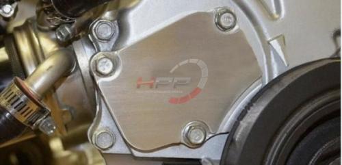 - Krycí deska napínáku rozvodového řetězu je navržena s jednoduchým těsnícím o-kroužkem, který je zasazen do obrobené drážky na zadní straně desky.