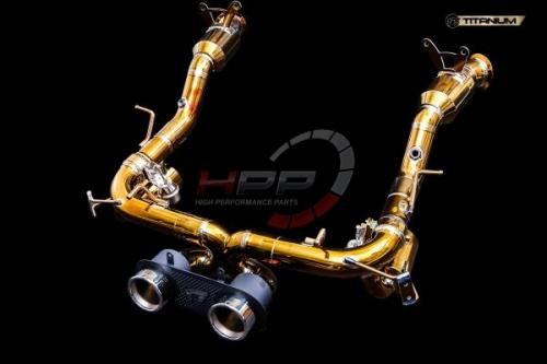 Manifold back výfuk s náhradami katalyzátorů Innotech (IPE) na Ferrari 458 Italia Spider 4.5 V8 (10-15) - titanový. Kompletní výfukový systém od výfukových svodů.