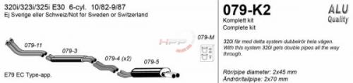 Manifold back výfuk Simons BMW 3-Series E30 320i/323i/325i 6-vál. (10/82-09/87). Kompletní výfukový systém od výfukových svodů.
