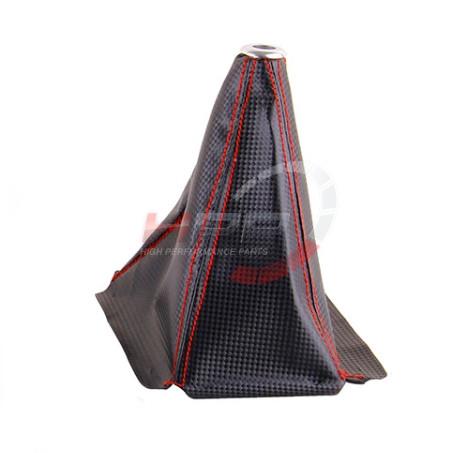 Manžeta na řadící páku Epman - PVC kůže karbon look s červeným prošíváním.