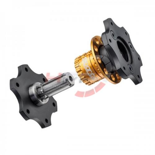 Vycvakávající mezikus mezi sportovním volantem a klasickou sportovní nábou, pasuje pro všechny volanty se šesti otvory (Sparco, Momo, OMP..). Propojení pro klakson zůstává zachováno. Ideální pro motorsport nebo drift a také jako ochrana před zloději. Lehce vyjmutelný volant, stejný princip jako u F-1. Vyrobena z hliníku s ocelovým ozubením na CNC.