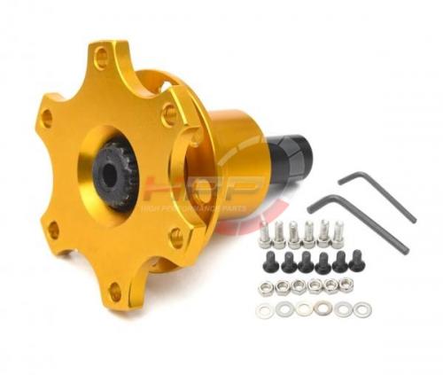 Výcvakávající mezikus mezi sportovním volantem a klasickou sportovní nábou, pasuje na volanty se šesti děrami (Sparco, Momo, OMP..). Ideální pro motorsport. Lehce vyjmutelný volant, stejný princip jako u F-1.