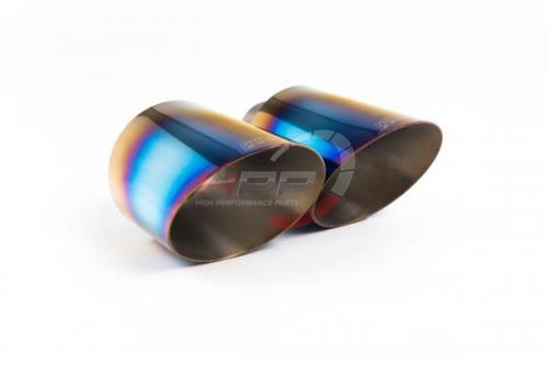 Koncovky: 2x 115mm GT Burnt Titanium (titanové modré).