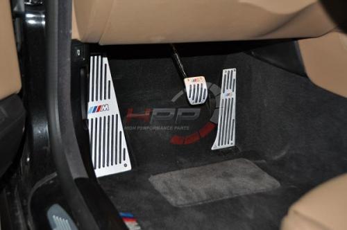 Pedály ProRacing pro BMW 3-Series E30 / E36 / E46 / E90 / E91 / E92 / E93 s logem M technik - stříbrné. Pasuje na manuální převodovku.