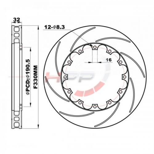 Přední brzdové kotouče D2 Racing 330x32mm - drážkované - ...