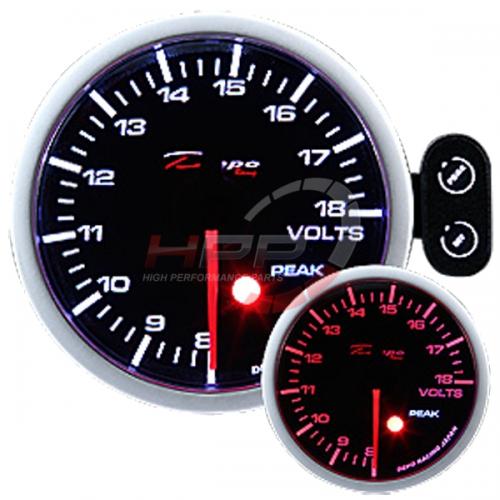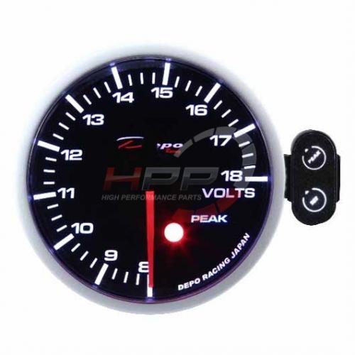Budík nejvyšší série Peak firmy Depo Racing. Budíky mají programovatelné varování (programmable warning) a také funkci vyvolávání (peak recall). Budíky jsou podsvícené bílou a červenou LED diodou. Lze tedy vybrat vhodnou kombinaci. Jsou výborně viditelné i při ostrém slunci. Montážní hloubka je 35mm. Balení obsahuje kabeláž, ovládací panel, stínítko, držák na palubovku a montážní materiál.