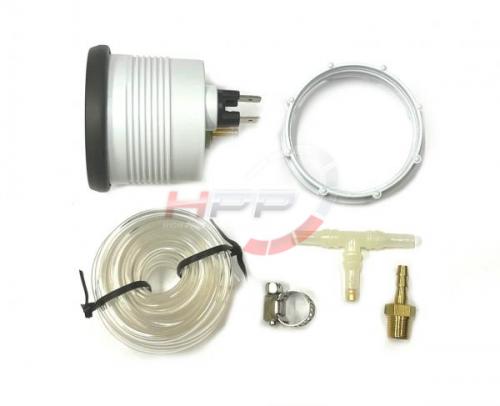 Budík série V od firmy Depo Racing ve skvělém retro designu, který nenarušuje vzhled interiéru. Budíky jsou podsvícené bílou žárovkou. Jsou dobře viditelné i při ostrém slunci. Montážní hloubka je ca 37mm. Balení obsahuje montážní materiál, hadičku, fitinku, T spojku a sponu.
