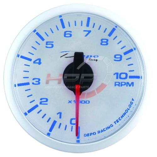 Budík série WBL - Super White and Blue firmy Depo Racing. Budíky jsou podsvícené bílou a modrou LED diodou. Lze tedy vybrat vhodnou kombinaci. Jsou výborně viditelné i při ostrém slunci. Montážní hloubka je 25mm. Balení obsahuje kabeláž a montážní materiál.