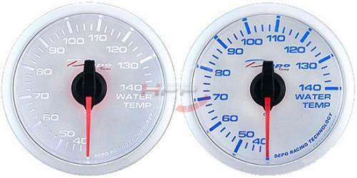 Budík série WBL - Super White and Blue firmy Depo Racing. Budíky jsou podsvícené bílou a modrou LED diodou. Lze tedy vybrat vhodnou kombinaci. Jsou výborně viditelné i při ostrém slunci. Montážní hloubka je 25mm. Balení obsahuje elektronický senzor teploty, kabeláž a montážní materiál.