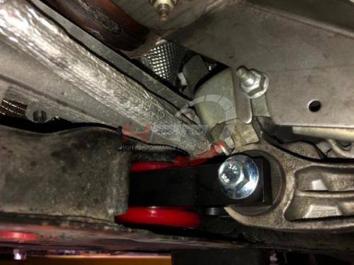 Reakční vzpěra (Pendulum Mount Dogbone) vyrobena na CNC z pevnostní slitiny hliníku, následně černě eloxována pro maximální pevnost. Polyuretanové uložení je pevnější než sériové (tvrdost 85 SHA).