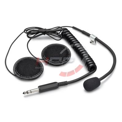 Sada sluchátek s mikrofonem do helmy s otvevřeným hledím.