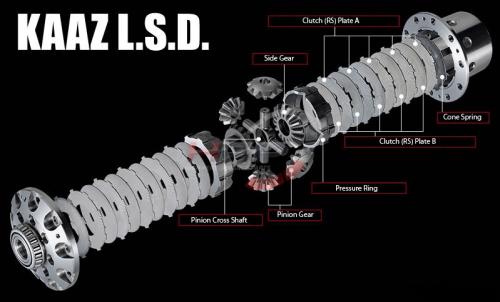Společnost KAAZ je jedním z největších výrobců samosvorných diferenciálů v Japonsku. Vyrábí se ve variantách 1,5way a 2way. Jedná se o mechanické, lamelové diferenciály s omezenou svorností. Použitím velké plochy třecích lamel a jejich počtu zajišťují nejlepší možný přenos výkonu motoru na vozovku. Nastavitelná svornost od 35% do 100%. Balení obsahuje potřebné množství převodového oleje.