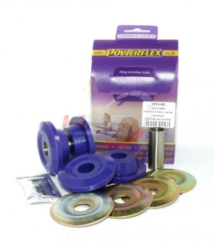 Silentbloky používané k uložení podvozkových částí patří k nejnamáhanějším částem, použitým na automobilu. Podstupují enormní zatížení a nárazy a ve většině případů bez jakékoli údržby. Běžné silentbloky jsou vyráběné z gumových směsí, obsahujících přírodní produkty. Takový materiál podléhá stárnutí, měkne a stává se příliš poddajným. Přestává odolávat silám na něj vynakládaným a tudíž dovoluje pohyb jednotlivých částí podvozku. Výsledkem je obtížně seřiditelná geometrie vozidla, zvýšené opotřebení pneumatik, snížená stabilita při brždění a špatná ovladatelnost vozu. Tvrdé materiály používané dříve k závodním účelům způsobovaly nepříjemný hluk a opotřebení dalších částí vozu. Powerflex však již několik let nabízí fantastickou náhradu! Tou jsou polyuretanové silentbloky. Díky vědecky vyvinuté polyuretanové směsi a jejím technologickým výhodám, jsou silentbloky Powerflex o 30% tvrdší než nové originální gumové silentbloky, zároveň ale absorbují stejné množství hluku. Díky možnosti vyměnit některé silentbloky navíc ušetříte, protože nebudete muset měnit celé rameno nebo jiný díl. Powerflex – to je delší životnost pneumatik, lepší ovladatelnost a větší bezpečnost!