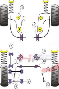 Silentbloky používané k uložení podvozkových částí patří k nejnamáhanějším částem, použitým na automobilu. Podstupují enormní zatížení a nárazy a ve většině případů bez jakékoli údržby. Běžné silentbloky jsou vyráběné z gumových směsí, obsahujících přírodní produkty. Takový materiál podléhá stárnutí, měkne a stává se příliš poddajným. Přestává odolávat silám na něj vynakládaným a tudíž dovoluje pohyb jednotlivých částí podvozku. Výsledkem je obtížně seřiditelná geometrie vozidla, zvýšené opotřebení pneumatik, snížená stabilita při brždění a špatná ovladatelnost vozu. Tvrdé materiály používané dříve k závodním účelům způsobovaly nepříjemný hluk a opotřebení dalších částí vozu. Powerflex však již několik let nabízí fantastickou náhradu! Tou jsou polyuretanové silentbloky. Díky vědecky vyvinuté polyuretanové směsi a jejím technologickým výhodám, jsou silentbloky Powerflex o 30% tvrdší než nové originální gumové silentbloky, zároveň ale absorbují stejné množství hluku. Díky možnosti vyměnit některé silentbloky navíc ušetříte, protože nebudete muset měnit celé rameno nebo jiný díl. Powerflex – to je delší životnost pneumatik, lepší ovladatelnost a větší bezpečnost!