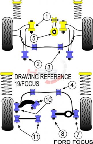 Silentbloky Powerflex Ford Focus vč. RS/ST (-06) Rear Low...