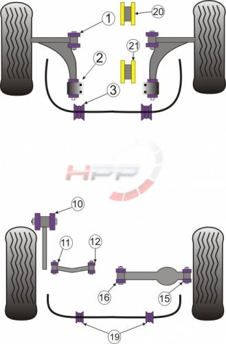 Silentbloky používané k uložení podvozkových částí patří k nejnamáhanějším částem, použitým na automobilu. Podstupují enormní zatížení a nárazy a ve většině případů bez jakékoli údržby. Běžné silentbloky jsou vyráběné z gumových směsí, obsahujících přírodní produkty. Takový materiál podléhá stárnutí, měkne a stává se příliš poddajným. Přestává odolávat silám na něj vynakládaným a tudíž dovoluje pohyb jednotlivých částí podvozku. Výsledkem je obtížně seřiditelná geometrie vozidla, zvýšené opotřebení pneumatik, snížená stabilita při brždění a špatná ovladatelnost vozu. Tvrdé materiály používané dříve k závodním účelům způsobovaly nepříjemný hluk a opotřebení dalších částí vozu. Powerflex však již několik let nabízí fantastickou náhradu! Tou jsou polyuretanové silentbloky. Díky vědecky vyvinuté polyuretanové směsi a jejím technologickým výhodám, jsou silentbloky Powerflex o 30% tvrdší než nové originální gumové silentbloky, zároveň ale absorbují stejné množství hluku. Díky možnosti vyměnit některé silentbloky navíc ušetříte, protože nebudete muset měnit celé rameno nebo jiný díl. Powerflex – to je delší životnost pneumatik, lepší ovladatelnost a větší bezpečnost!