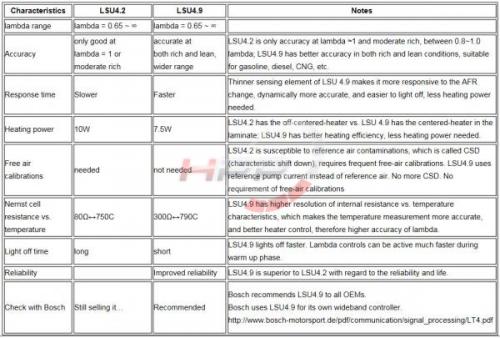 - Modernější verze O2 senzoru Bosch LSU 4.2, zejména co se týče spolehlivosti a životnosti. Má vyšší rozlišení vnitřního odporu oproti teplotní charakteristice, což činí měření přesnější. LSU 4.9 využívá reference elektrického proudu čerpadla, nemá tedy žádný požadavek na kalibraci jako starší verze LSU 4.2 (viz foto).