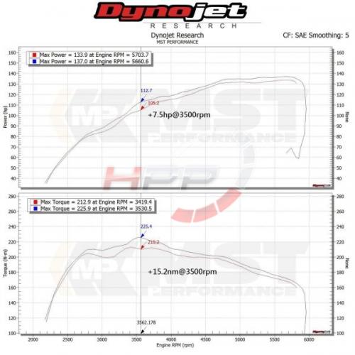 - Tento celek zvyšuje značně průtok nasávaného vzduchu, eliminuje restrikce v sací soustavě, zlepšuje odezvu turbodmychadla a zvyšuje celkový výkonový potenciál - dyno test až 7,5PS a 15,2Nm @ 3500ot./min.