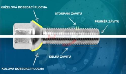 Šrouby jsou určené k montáži alu nebo plechových disků a zejména pro montáž rozšiřovacích podložek, kde jsou vyžadovány delší šrouby. Před objednáním si prosíme zjistěte správný typ závitu náboje, správnou dosedací plochu šroubů a také potřebnou délku závitu. Ta se spočítá sečtením délek sériového šroubu a dané rozšiřovací podložky (příklad: sériový šroub má délku 26mm, rozšiřovací podložka má tloušťku 15mm, poté byste měli objednat šroub 39mm nebo 45mm, v závislosti na délce závitu v náboji kola).