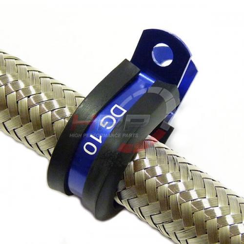 Hliníkový eloxovaný obal. Gumová vložka chrání hadici před poškozením. Eliminuje vibrace. Určeno pro opletené hadice nebo teflonové PTFE. Snadná instalace pomocí šroubu. Univerzální použití.