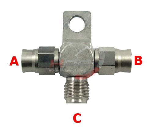 Téčko s výstupy 2x PTFE hadice D-03 (AN3) + 1x samec 1/8"...