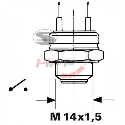 Termo spínač (Thermo switch). Závit M14 x 1,5. Spínací bod: zapnutí 87°C / vypnutí 82°C.