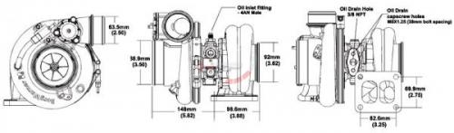 - kompresorový obal: vstup na hadici 102mm (4" ported), výstup na hadici 63,50mm (2.5") nebo volitelný výstup na V-band.