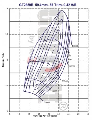- kompresorová část = A/R 0.42 / Trim 56. Vnitřní/vnější průměr hřídele 44,5/59,4mm.