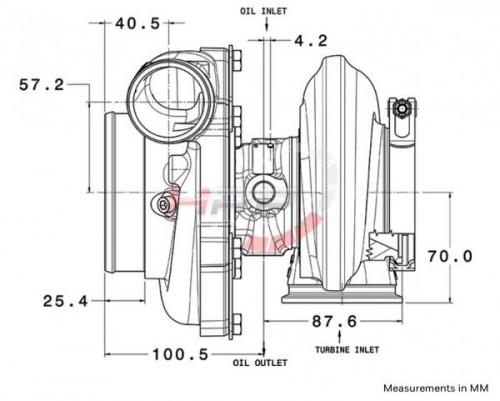 Originální turbo od firmy Garrett řady GT-X nové druhé generace (Gen II). Nové generace turbodmychadel jsou vybaveny následujícími benefity: frézované kované kompresorové kolo ze speciálních lehkých slitin s vysokou pevností, vysoce propustná kompresorová skříň s volitelnou možností montáže snímače otáček, keramické dvojité kuličkové ložisko, inkonelové turbínové kolo odolávající vysokým teplotám, rovnoměrná geometrie snižující pulzní hluk. Turbodmychadla zajišťují perfektní průtok vzduchu, mají mnohem rychlejší nástup a vyšší výkon o 10-20% než klasická řada GT, ale také starší generace GT-X. Ložiska jsou chlazeny vodou a olejem. Absolutní novinou u druhé generace je ta, že některé modely jsou k dispozici s obráceným otáčením směru tzv. reservním.