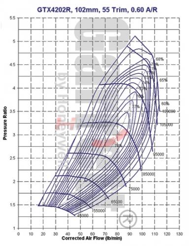 Originální turbo od firmy Garrett řady GT-X s dvojitými kuličkovými ložisky (ball bearing). Nejnovější řada dmychadel od firmy Garrett s přepracovanou kompresorovou částí s antisurge komorou, která eliminuje turbolag (tzv. turbodíru), a novým designem kompresorových lopatek, vyrobených z kovaného hliníku. Turbodmychadla zajišťují perfektní průtok vzduchu, mají mnohem rychlejší nástup a vyšší výkon o 10-20% než klasická řada GT. Ložiska chlazeny vodou a olejem.