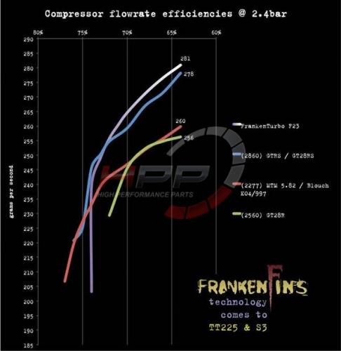 Turbokit Franken Turbo s hybridním turbodmychadlem F23 pro podelné motory Škoda / VW / Audi / Seat 1.8T 150/180210/225PS.