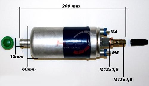 Replika externí palivové pumpy in-line určená pro instalaci mezi palivovou nádrž a vstřikovací rampu. Řeší problém s nedostatkem paliva a chudou směsí ve vyšších otáčkách. Doporučená montáž palivového filtru před čerpadla, aby nedošlo k jeho zničení vlivem kontaminantů. Tato palivová pumpa je normálně nainstalována u motorů Škoda, VW, Audi, Seat, Ford, Mercedes, Ferrari...
