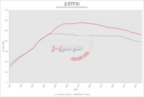 - Osvědčený motor 2.5TFSI umí z relativně malého objemu dostat velmi hezký výkon. Software Revo umožňuje těmto motorům dodatečný výkon a širší výkonové pásmo, aniž by ztrácel hladký chod nebo se zhoršila spotřeba. Zvýšení točivého momentu v celém rozsahu otáček poskytuje mnohem větší flexibilitu ve všech převodových stupních. Někteří zákazníci zaznamenali snížení spotřeby až o 10% po této úpravě.