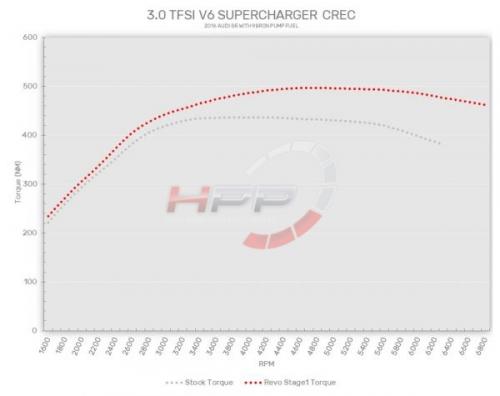 - Zážehová jednotka 3.0 V6 TFSI je velmi návyková, a to zejména kvůli svěmu šestiválcovému zvukovému projevu. Turbem přeplňovaný motor dává již v sérii pěkných 333PS a 441Nm. Stage 1 software je navržen tak, aby maximalizoval potenciál tohoto motoru, zlepšil odezvu na plynový pedál a zvýšil výkon i točivý moment v celém spektru otáček.
