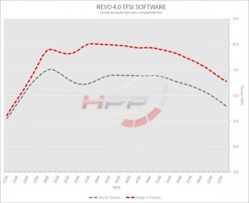 - Osvědčený motor 4.0TFSI byl vyvinut ve spolupráci s automobilkou Bentley a díky vrtání 84,5 mm a zdvihu 89 mm disponuje objemem 3993 cm3. Má klasické rozevření motorů V8, tedy válce svírají úhel 90stupňů a navíc je přeplňován dvojicí Twin-scroll turbodmychadel. Software Revo umožňuje těmto motorům dodatečný výkon a širší výkonové pásmo, aniž by ztrácel hladký chod nebo se zhoršila spotřeba. Zvýšení točivého momentu v celém rozsahu otáček poskytuje mnohem větší flexibilitu ve všech převodových stupních. Někteří zákazníci zaznamenali snížení spotřeby až o 10% po této úpravě.