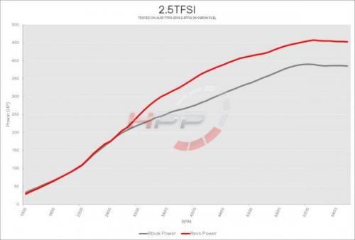 - Osvědčený motor 2.5TFSI umí z relativně malého objemu dostat velmi hezký výkon. Software Revo umožňuje těmto motorům dodatečný výkon a širší výkonové pásmo, aniž by ztrácel hladký chod nebo se zhoršila spotřeba. Zvýšení točivého momentu v celém rozsahu otáček poskytuje mnohem větší flexibilitu ve všech převodových stupních. Někteří zákazníci zaznamenali snížení spotřeby až o 10% po této úpravě.