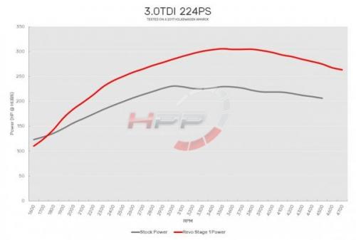 - Naftový motor 3.0 TDi je motor s hladkým chodem, který dodává velmi pěkný výkon a točivý moment již v nízkých otáčkách. Software Revo umožňuje těmto motorům dodatečný výkon a širší výkonové pásmo, aniž by ztrácel hladký chod nebo se zhoršila spotřeba. Zvýšení točivého momentu v celém rozsahu otáček poskytuje mnohem větší flexibilitu ve všech převodových stupních. Někteří zákazníci zaznamenali snížení spotřeby až o 10% po této úpravě.