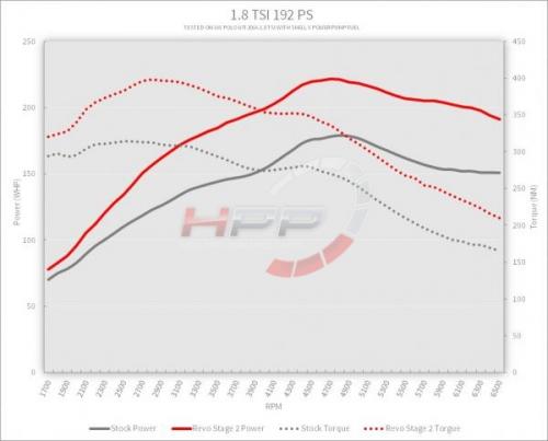 - Inovativní motor 1.8TSI umí být vcelku úsporný, ale když je potřeba, dodává velmi pěkný výkon v celém spektru otáček. Software Revo umožňuje těmto motorům dodatečný výkon a širší výkonové pásmo, aniž by ztrácel hladký chod nebo se zhoršila spotřeba. Zvýšení točivého momentu v celém rozsahu otáček poskytuje mnohem větší flexibilitu ve všech převodových stupních. Někteří zákazníci zaznamenali snížení spotřeby až o 10% po této úpravě.