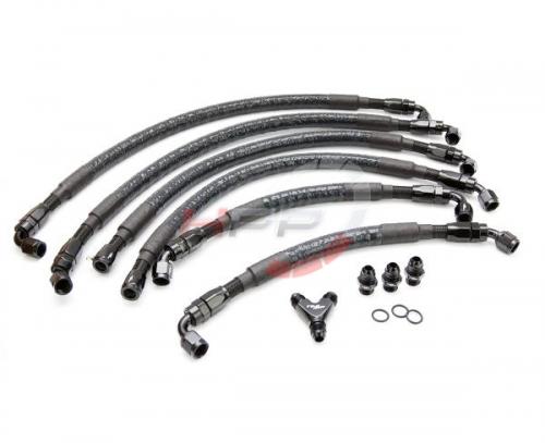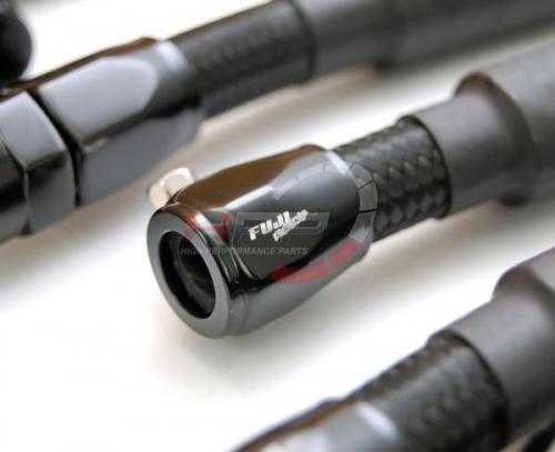 V našich sadách palivového potrubí, které jsou speciálně navrženy pro vozy Subaru, používáme hadici řady 210, která je velmi lehká, s vnějším opletením ze skelných vláken namísto kovového opletení, ale stále má stejné vysoké specifikace jako hadice řady 200 s vnějším kovovým opletením. Nejenže používáme lehkou palivovou hadici, ale také na každou hadici přidáváme černou protipožární manžetu, která pomáhá chránit hadice před teplotami v motorovém prostoru a odolává teplotě 260 °C. Hadice je zakončena černými eloxovanými koncovkami značky Fuji Racing.